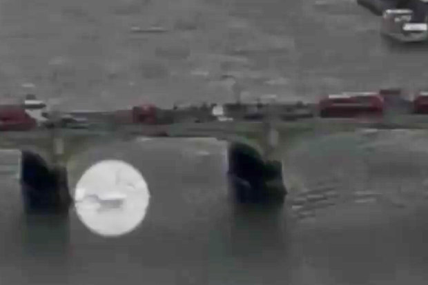 Đoạn video do camera an ninh ghi lại, cho thấy, chiếc xe lao với tốc độ nhanh trên vỉa hè cây cầu Westminster. Dường như để né tránh khủng bố, một người phụ nữ đã phải nhảy xuống dòng sông Thames bên dưới.