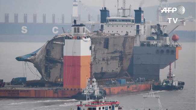 Theo hãng AFP đưa tin, sau một tuần, chiếc tàu nửa chìm chở xác phà Sewol đã cập cảng Mokpo, tây nam Hàn Quốc. Cảng Mokpo cách địa điểm trục vớt phà khoảng 105km.