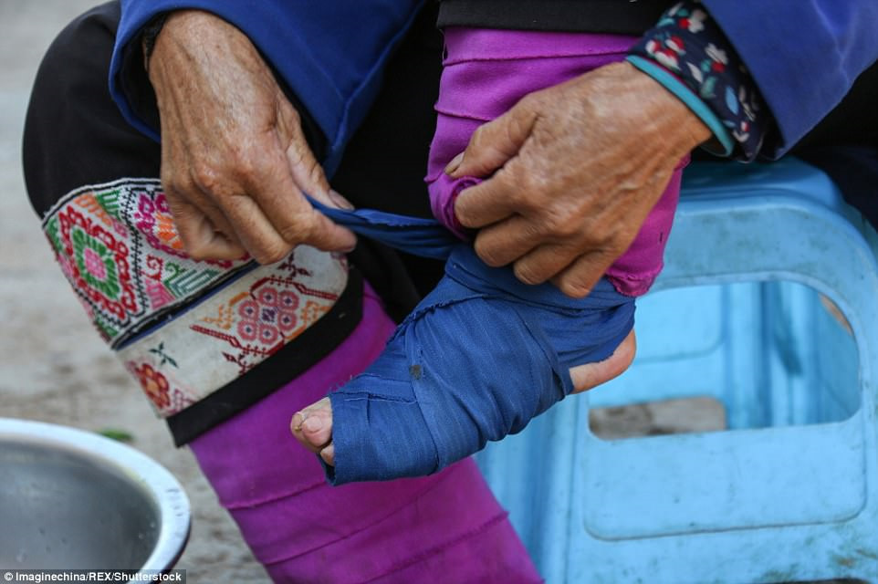 Những đôi bàn chân sẽ được bó chặt thêm sau mỗi lần tháo vải định kỳ để rửa và xoa bóp. Nhiễm trùng là hậu quả phổ biến nhất khiến ngón chân bị hoại tử, thậm chí gây tử vong.