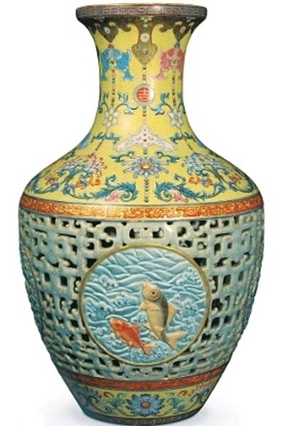 Đây là chiếc bình gốm có giá trị cao nhất từ trước tới giờ. Các hoa văn tinh xảo, rõ nét và hài hòa của nó được ca ngợi là đỉnh cao. Dấu ấn triện của hoàng gia thể hiện nó ra đời vào đời vua Càn Long. Một nhà thám hiểm đã mua nó khi tới Trung Quốc, đem về Anh, sau đó bán lại. Ban đầu, nó chỉ có giá 1.000 USD vì bị nghi là bản copy, nhưng sau khi xác thực là hàng "chuẩn", giá trị lập tức vọt lên 1 triệu USD. Sau nhiều lần sang tay, chiếc bình hiện có giá 80,2 triệu USD.