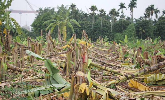 Khu vườn chuối hơn 2.000 cây của gia đình ông Quân bị giám đốc doanh nghiệp thuê nhóm côn đồ chặt phá. Ảnh: Đ.Tuỳ