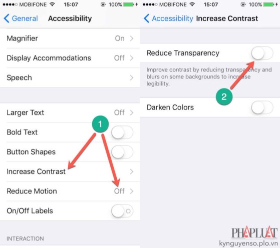 Nếu cảm thấy iPhone hoạt động chậm chạp, bạn hãy thử tắt hiệu ứng chuyển động giữa các cửa sổ, ứng dụng… bằng cách truy cập vào Settings (cài đặt) > General (cài đặt chung) > Accessibility (trợ năng) và vô hiệu hóa tùy chọn Reduce Motion (giảm chuyển động) và Reduce Transparency.