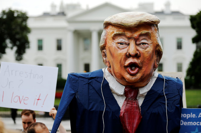 Biểu t́nh bên ngoài Nhà Trắng Mỹ yêu cầu bắt giữ Trump Jr ngày 12-7 - Ảnh: Reuters