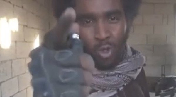 Báo IB Times cho biết, trong video mới xuất hiện trên mạng, phiến quân IS Abu Ishaq al-Somali cầm một con dao lớn và đứng cạnh một khẩu súng máy kê sát cửa sổ ở một nơi không rõ địa danh.