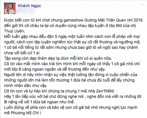 Phương Mỹ Chi khi bị tố bạc bẽo, vô ơn, ca sĩ Khánh Ngọc lên tiếng