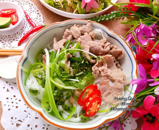 Vậy là bạn đã hoàn thành bát phở bò thơm ngon rồi nhé. (Ngoài thịt bò chần bạn có thể luộc thịt bô khô thái mỏng ăn kèm nha).