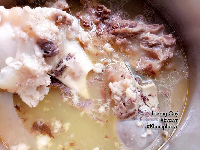 Sau đó cho vào nồi nước dùng tiếp tục hầm thêm khoảng 1 giờ. Nêm 1 thìa bột canh, 1 thìa bột nêm sao cho vừa miệng với nồi nước dùng của bạn.