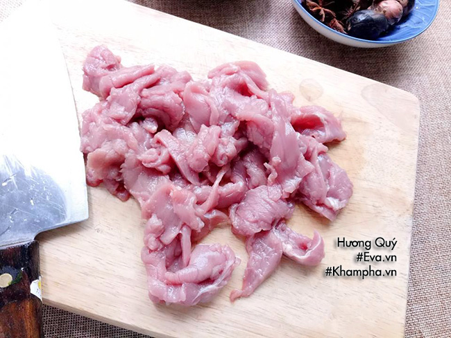 Bước 4: Thịt bò thái mỏng. (Nếu thích bạn có thể ướp thêm một chút xíu gia vị).