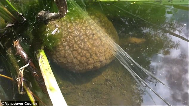 Sinh vật bí ẩn hình bộ não lộ diện dưới hồ ở Canada.
