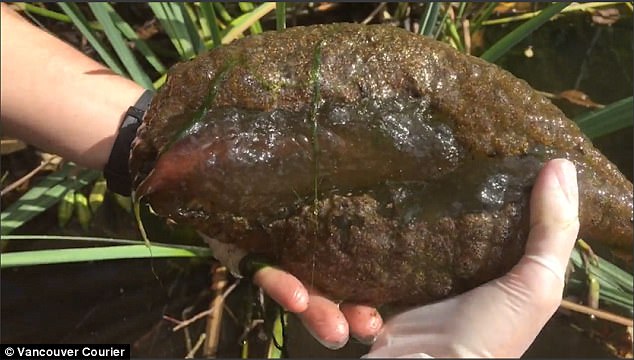 sinh vật dạng sệt, vẻ ngoài giống như bộ não mới được phát hiện lần đầu tiên ở công viên Stanley, Vancouver, Canada.