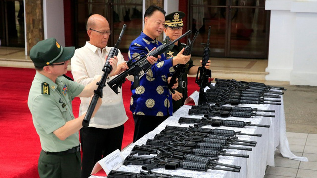 Đại sứ Trung Quốc tại Philippines Triệu Giám Hoa đã tham dự sự kiện bàn giao cùng ông Duterte vào thời điểm đó. Lô vũ khí lúc bấy giờ gồm 3.000 súng trường và 6 triệu viên đạn các loại.