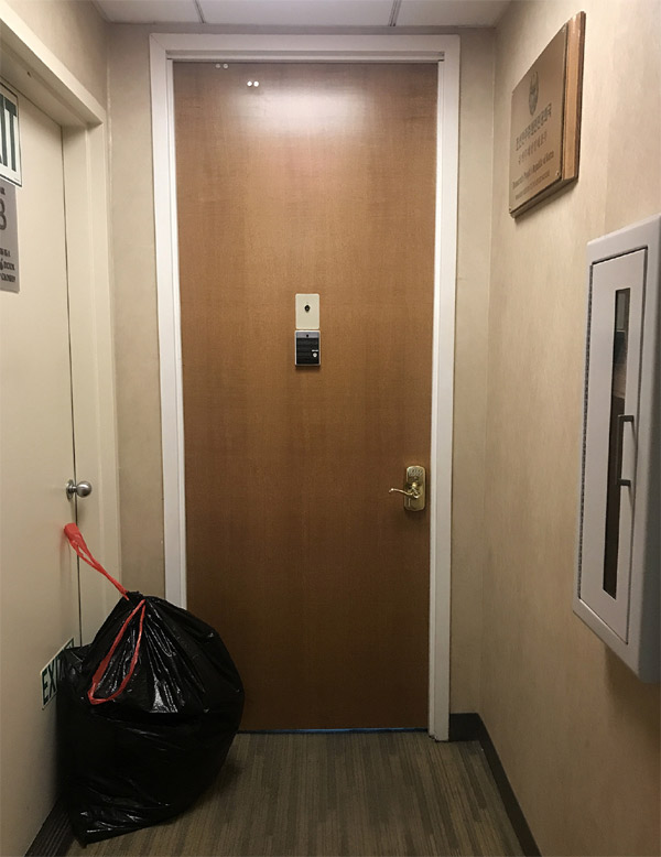 Lối vào của họ có một cánh cửa màu nâu chắc chắn nằm cạnh một lối thoát hiểm. Theo Bloomberg, trước những chuyến thăm liên tiếp tới đó, không một ai ra mở cửa và các cuộc điện thoại cũng không có người trả lời.