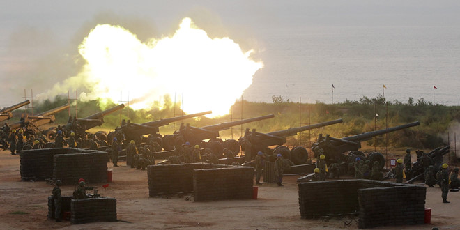 Một cuộc tập trận của lực lượng pháo binh Đài Loan hồi năm 2015. Ảnh: Reuters.