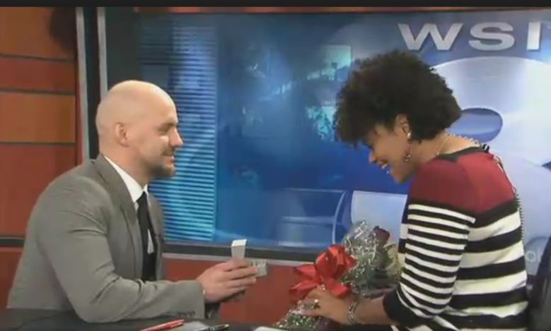 Nhiều người có những ý tưởng độc đáo về việc cầu hôn. Giây phút cầu hôn này sẽ vô cùng ấn tượng với cặp đôi này. Phóng viên được cầu hôn trong lúc đang phát hình trực tiếp. Thật lạ và độc đáo.