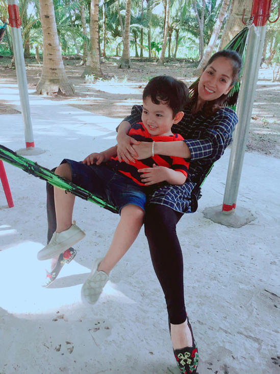 Khánh Thi vác bụng bầu đi du xuân cùng chồng trẻ và con trai