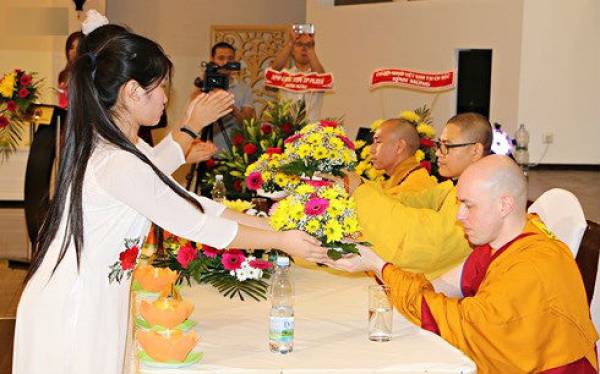 Dâng hoa cúng dường chư tôn đức