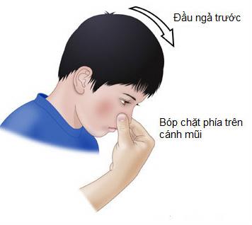 Dùng ngón trỏ và ngón cái bóp chặt cánh mũi của trẻ để ngăn máu chảy ra. Giữ như vậy trong 10 phút để tạo cục máu đông. Nếu thả tay quá sớm hoặc quá thường xuyên sẽ khiến máu chảy kéo dài hơn.