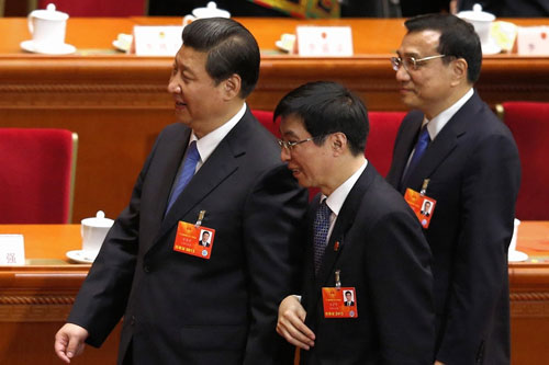Từ trái qua phải: Chủ tịch Trung Quốc Tập Cận Bình, Vương Hỗ Ninh, Thủ tướng Lý Khắc Cường. Ảnh: Reuters.