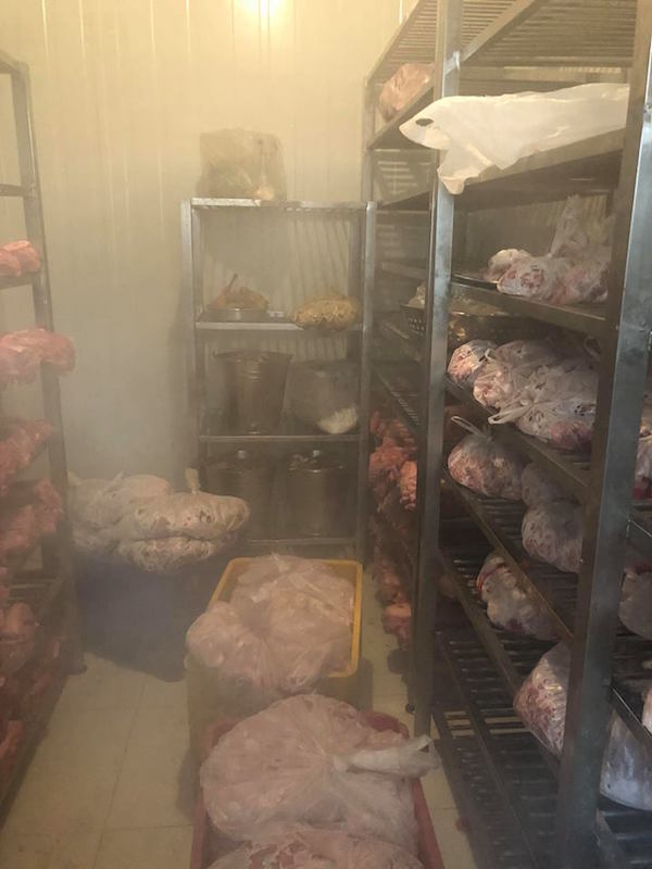Kho lạnh, phía chính diện là những xô thịt đã ướp.