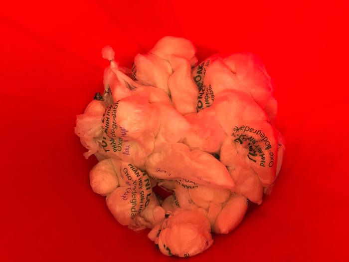 Xô thịt được đặt trên giá đỡ để tiện việc nướng than bị nhà báo đặt xuống nền nhà chụp ảnh và chú thích bốc mùi, có màu lạ...
