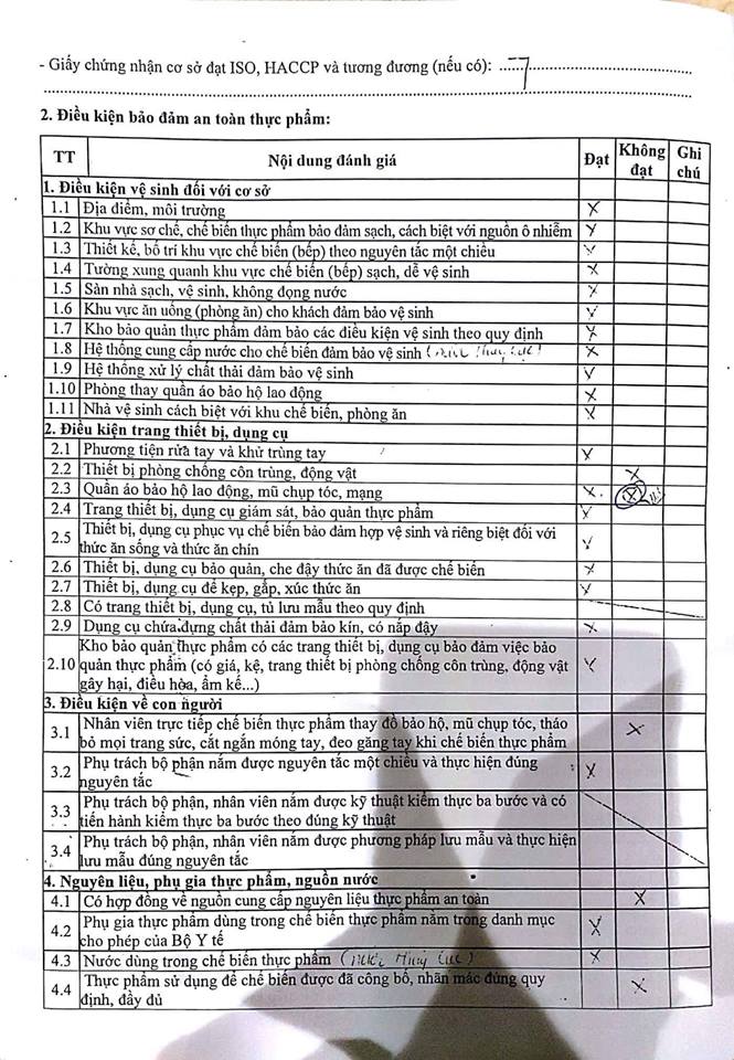 2. Sử dụng trang phục bảo hộ lao động cho nhân viên chưa đầy đủ, 5 nhân viên tiếp xúc trực tiếp với thực phẩm không mang khẩu trang...