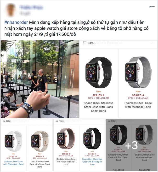 Xếp hàng để đem những chiếc iPhone XS, XS Max sớm nhất về Việt Nam, một số người cũng không quên tranh thủ nhận đặt hàng mẫu Apple Watch Series 4. Có khá nhiều những màn rao hàng như thế này trên nhóm người chơi Apple Watch tại Việt Nam. Một số người rao giá Apple Watch mới lên đến 24 triệu đồng cho bản vỏ thép.
