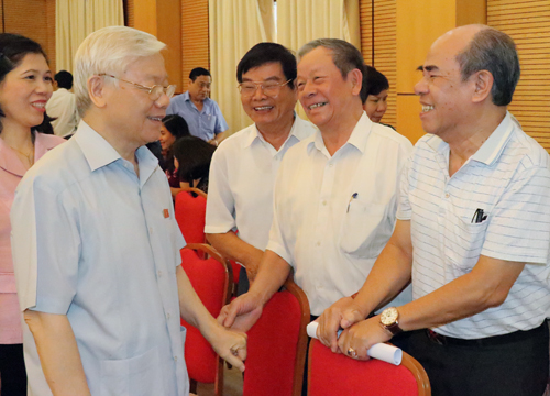 Sáng 8/10, Tổng bí thư Nguyễn Phú Trọng cùng tổ đại biểu Quốc hội ở đơn vị bầu cử số 1 đã tiếp xúc cử tri quận Ba Đình, Hoàn Kiếm trước kỳ họp thứ sáu, Quốc hội khóa XIV (dự kiến khai mạc ngày 21/10).