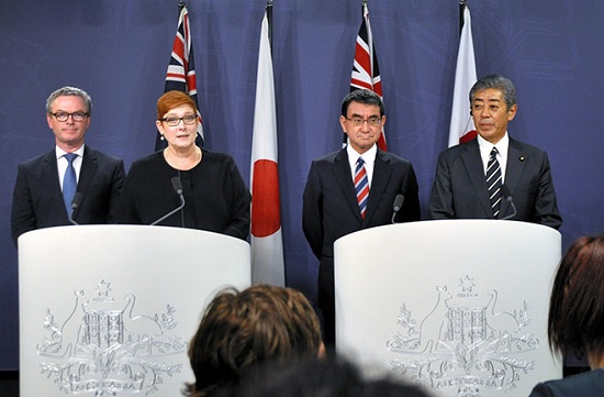Việc Australia và Nhật Bản tăng cường hợp tác quân sự là một trong những trọng tâm củag đối thoại cấp bộ trưởng thường niên giữa hai nước hôm 10/10 vừa qua, trong bối cảnh căng thẳng leo thang tại Biển Đông và Biển Hoa Đông.