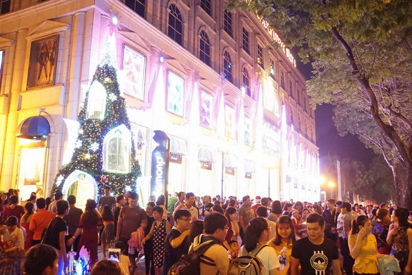 Ảnh toàn dân ra đường đón Noel. Ngay trong lúc này, đêm 24-12-2018, hàng triệu người đang tràn ra đường đón Noel tại VN.