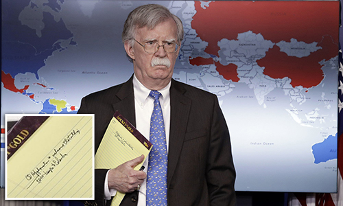 "Afghanistan, hoan nghênh các cuộc thảo luận. 5.000 binh sĩ tới Colombia", cố vấn an ninh John Bolton viết trên tập giấy ghi chép mà ông mang vào buổi họp báo thông báo lệnh trừng phạt chống Venezuela mới. Khi được hỏi về khả năng Mỹ gửi binh sĩ đến Colombia để đối phó với khủng hoảng tại Venezuela, Bolton cho biết "tất cả các lựa chọn đang nằm trên bàn thảo luận", USA Today ngày 28/1 đưa tin.