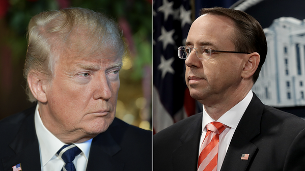 Trump đột ngột sa thải Comey khi áp lực gia tăng đối với cuộc điều tra Nga, gióng lên hồi chuông cảnh báo trong FBI và Bộ Tư pháp. Trump nổi giận vì quyết định của Rosenstein từ tháng 5 năm 2017 để chỉ định công tố viên đặc biệt Robert Mueller đứng đầu cuộc điều tra Nga. Điều đó đến sau khi Trump sa thải Giám đốc FBI James Comey. Rosenstein sau đó giám sát cuộc điều tra của công tố viên đặc biệt.