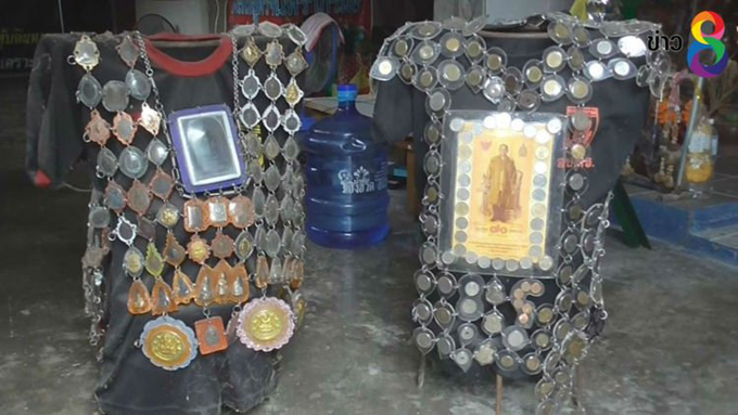Hai trong số ba bộ áo giáp được làm từ bùa may mắn của ông Sanom ở Thái Lan. Ảnh: Thaich8 News.