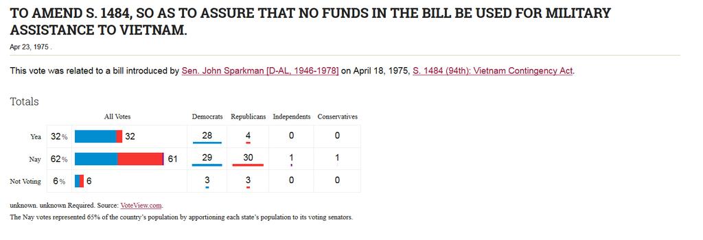 khi kư hiệp định mỹ hứa sẽ bomb nếu vc đem quân vào nam. nhưng vài tháng sau, qh ra case–church amendment cấm mỹ dùng quân đội ở vn, lào, miên. xem ra vnch đă bị bỏ rơi. (amendment đó cũng là lư do mỹ làm ngơ khi tàu cộng xâm chiếm hoàng sa?) từ những động thái này, cho thấy mỹ làm giảm ư chí vnch (không có sự ủng hô giúp đỡ, lấy đâu xăng dầu, súng đạn chiến đấu chống liên xô, tàu, vc) và đồng thời ra dấu "bỏ nhỏ" sẽ không can thiệp khi vc xâm chiếm miền nam.