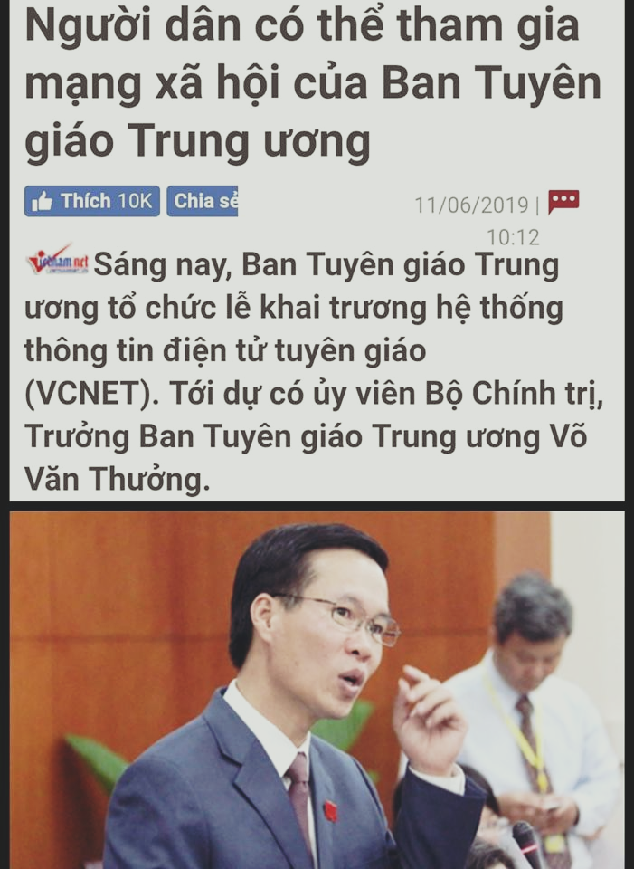 Báo quốc doanh đưa tin: Ban Tuyên [giáo] ra mắt mạng xã hội VCNET. Cư dân mạng thắc mắc cái tên VCNET, có phải là Việt Cộng Net hay không. Theo trang Kinh tế Đô thị, VCNET là sản phẩm Ban Tuyên giáo Trung ương, phối hợp cùng Tập đoàn Viettel, nhằm mục đích “định hướng dư luận xã hội”, trong công tác tuyên giáo.