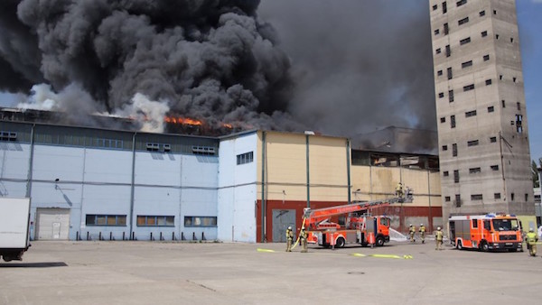 Kho hàng rộng 5.000m2 của Trung tâm Thương mại Đồng Xuân của người Việt ở Berlin bốc cháy dữ dội vào trưa 4/7. (Ảnh: Bz-berlin.de)