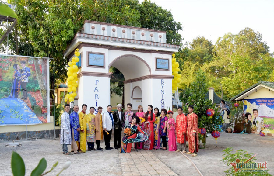 Ngay từ cổng căn biệt thự đã có tên của bà Thúy Nga cùng logo của chương trình "Thúy Nga - Paris by night" được in rất to và hoành tráng. Xung quanh là những tấm ảnh khổ to như pano, áp phích của hai vợ chồng được treo ở vị trí dễ nhìn thấy nhất.