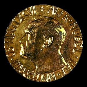 Một mặt của huy chương giải thưởng Nobel vì hòa bình