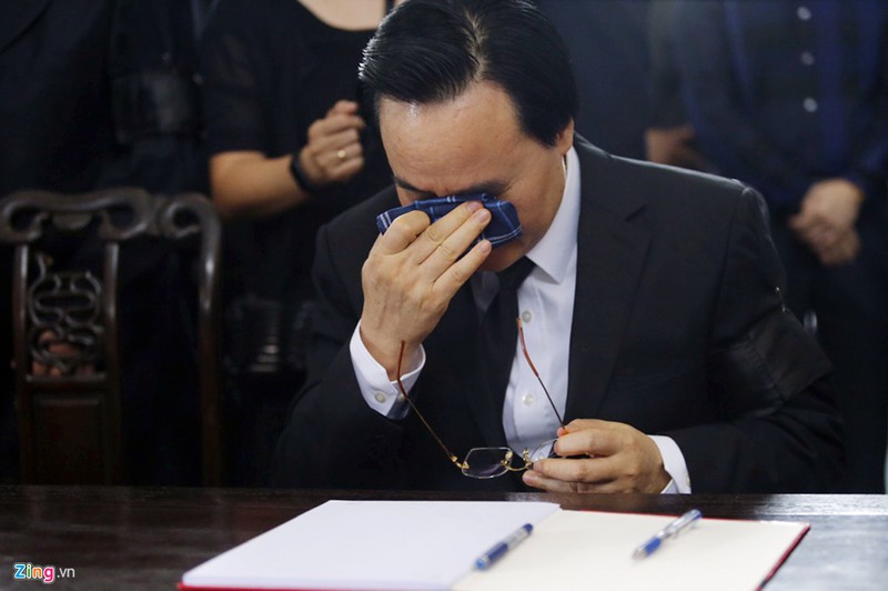 Người đứng đầu ngành giáo dục không cầm được nước mắt khi viết những lời từ biệt đồng nghiệp trong sổ tang. Ảnh: ****.vn.