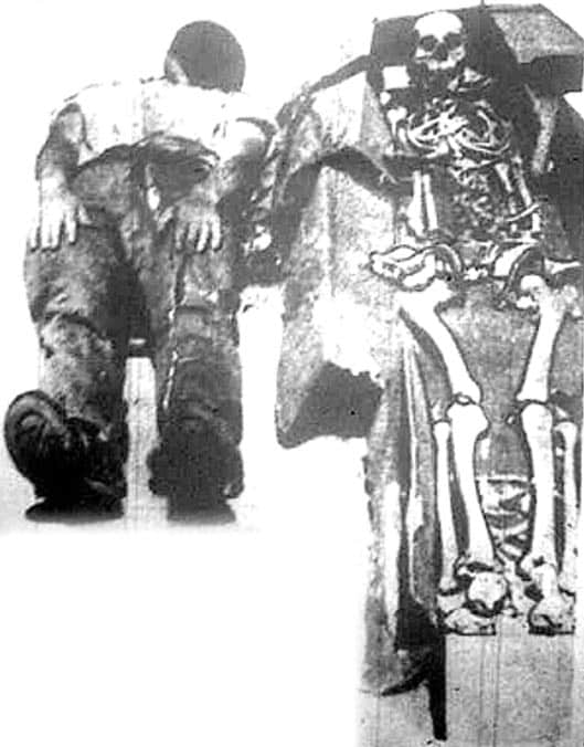 Trên thực tế, có nhiều tranh cãi về địa điểm chụp bức ảnh bộ xương dài 2,13m. Một điểm thú vị, đó là bộ xương này đã bị cắt mất phần đầu gối, vậy nên “2,13m” là chiều cao mà chúng ta thực sự nhìn thấy hay chỉ là “áng chừng” với giả thiết rằng bộ xương này có đủ cả phần chân? Liệu nó có thể cao hơn 2,13m nếu phần chân vẫn còn nguyên vẹn?