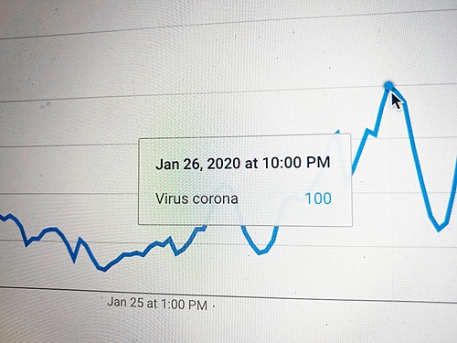 Người Việt bắt đầu tìm kiếm về virus corona vào ngày 23/1. Trong ba ngày sau đó, lượng tìm kiếm về từ khoá này liên tục tăng và đạt mức cao nhất vào tối ngày 26/1. Trong một ngày, đã có hơn 500 nghìn lượt tìm kiếm về virus corona, cao gấp 10 lần từ khoá xếp thứ hai.