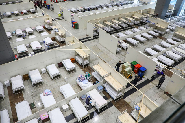 Giường bệnh được bố trí tại một trung tâm triển lăm ở Vũ Hán.