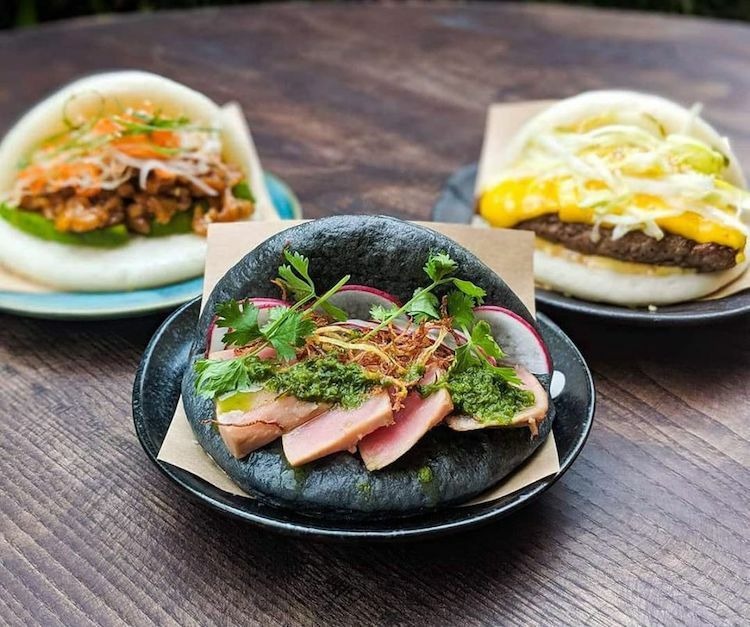 Đây là loại bánh bao kết hợp ẩm thực Á - Âu. Vỏ bánh được làm thành miếng giống bánh dày. Tuy nhiên lớp vỏ mỏng mềm, bên ngoài khô. Phần đặc biệt nhất ở món ăn là nhân bánh. Bạn có thể lựa chọn bánh gà chiên dưa góp, bánh cá ngừ hành tây, bánh bao lợn hầm xé tơi, bánh tôm hùm kèm bơ và trứng cá muối. Mỗi chiếc bánh có giá khoảng 50.000 - 150.000 đồng tùy loại nhân. Ở Hà Nội, Bao Wow, số 31a, ngõ 12 Đặng Thai Mai là quán ăn duy nhất bán món ăn này. Quán mở cửa từ 15h đến 23h. Ảnh: Bao Wow.