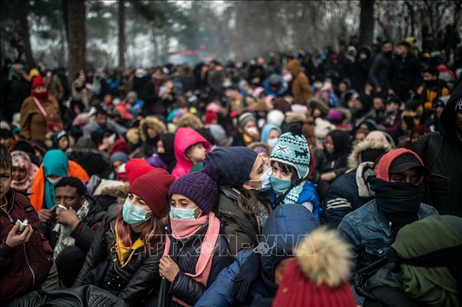 Người di cư tập trung tại khu vực Pazarkule, Edirne, biên giới Thổ Nhĩ Kỳ - Hy Lạp, ngày 29/2/2020. Ảnh: AFP/TTXVN