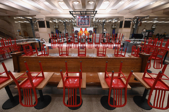 New York trở thành tâm dịch của Mỹ. Trong ảnh là một nhà hàng gần nhà ga Grand Central (New York) hôm 25-3 - Ảnh: AFP