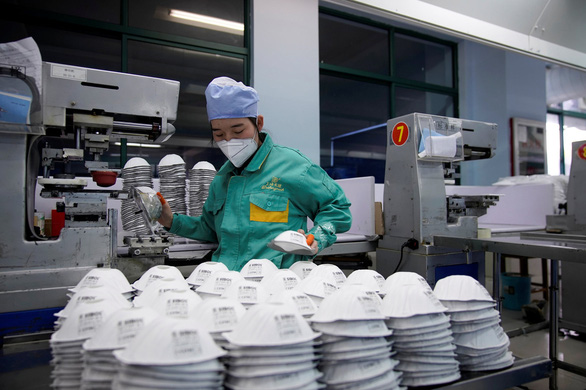 Sản xuất khẩu trang tại một nhà máy ở Thượng Hải, Trung Quốc - Ảnh: AFP