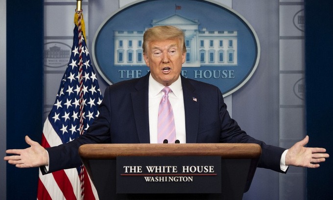 Trump họp báo tại Nhà Trắng hôm 10/4. Ảnh: AFP.