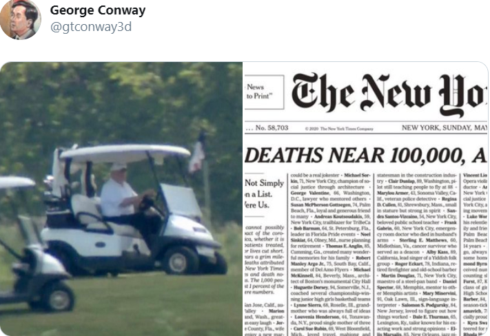 Chơi thì chơi ai nói gì đâu..tại trump cứ ba hoa cái miệng khi đề cập tới golf và so sánh với người khác...mà mình chơi quá cha hơn thiên hạ bởi vậy chúng chửi là đúng rồi..đang lúc người chết vẫn còn ,thất nghiệp cả đóng và kinh tế thì bết bát..