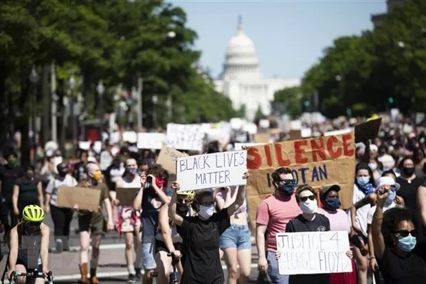 Người biểu tình tuần hành tại Washington D.C., Mỹ ngày 29/5/2020, bày tỏ phẫn nộ trước cái chết của người da màu George Floyd. (Ảnh: THX/TTXVN)