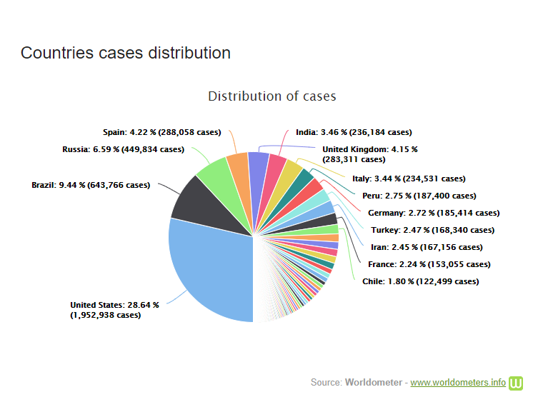 Biểu đồ tỷ lệ số ca nhiễm Covid-19 thế giới. (Nguồn: Worldometers)