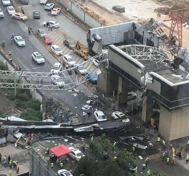 Cần cẩu đổ xuống tuyến đường cao tốc lân cận vốn đông đúc xe cộ đi lại. Chiếc cần cẩu đã đè bẹp 2 xe hơi, khiến ít nhất 2 người bị thương nặng nhưng không bị đe dọa đến tính mạng. Vụ tai nạn cũng khiến tòa nhà nhỏ lân cận bị hư hại. Giới chức năng tiếp tục điều tra làm sáng tỏ vụ việc.